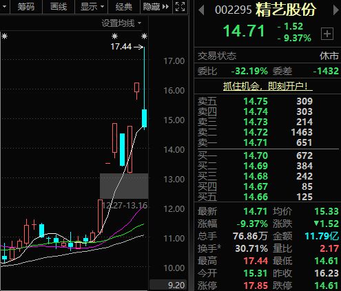 《每日經(jīng)濟(jì)新聞》記者注意到,精藝股份9月4日發(fā)布相關(guān)司法拍賣(mài)公告后,引發(fā)資本市場(chǎng)高度關(guān)注。9月5日—10月10日收盤(pán),精藝股份股價(jià)在20個(gè)交易日累計(jì)上漲47.99%。而在9月24日—10月10日期間的7個(gè)交易日,該股已錄得5個(gè)漲停板。