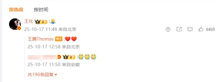 隨后,小米集團(tuán)公關(guān)部總經(jīng)理王化在該條博文評(píng)論區(qū)回復(fù)“擁抱”表情。王騰也回復(fù)比心表情。
