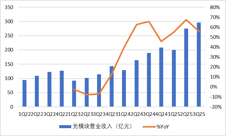 2025Q3單季度共實(shí)現(xiàn)營業(yè)收入295.90億元,yoy+56.0%。