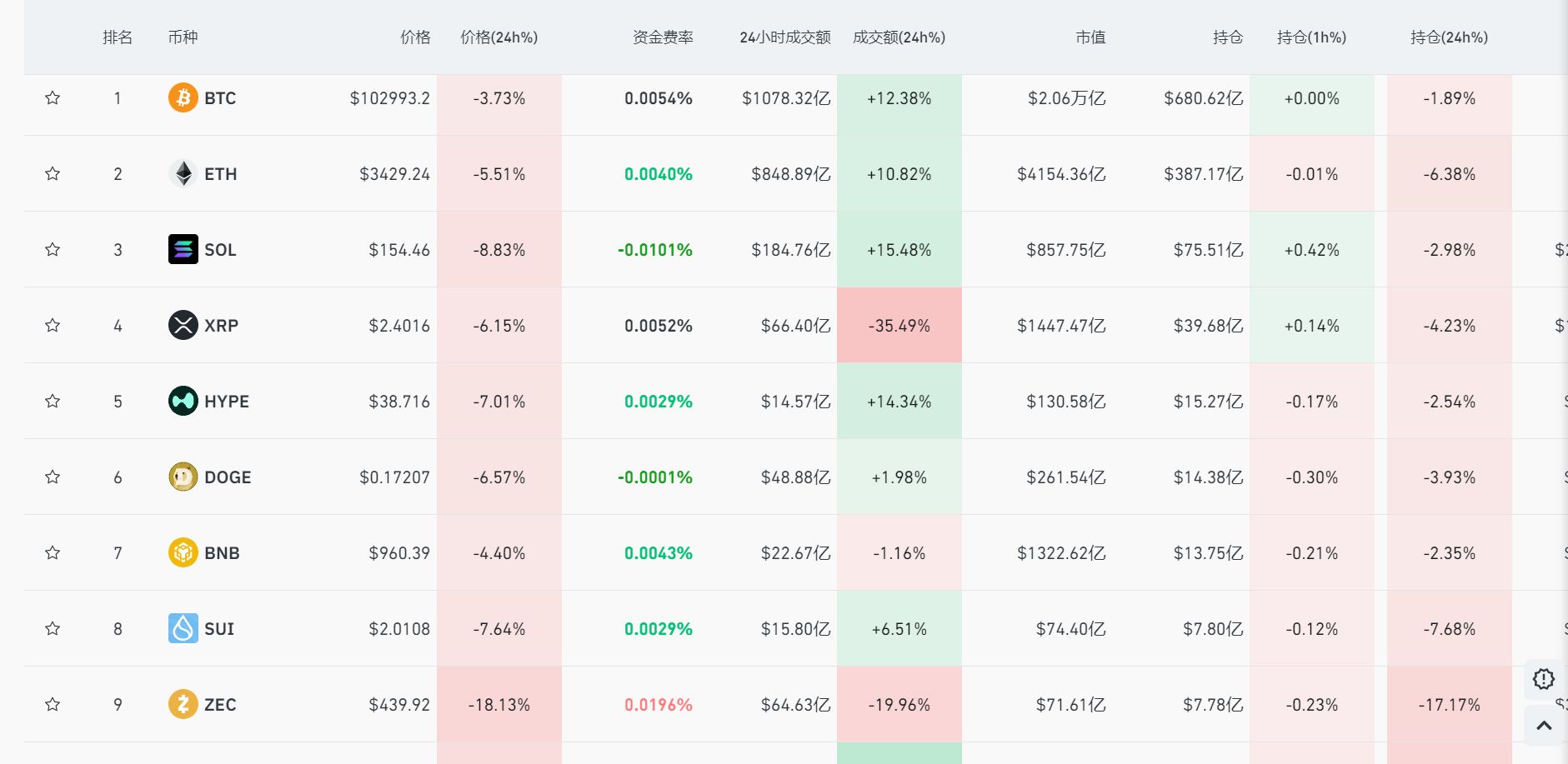 以太坊同樣走低,截至發(fā)稿跌破3430美元/枚,日內(nèi)跌超5%。此外,索拉納幣跌近9%,狗狗幣跌超6%,XRP跌超6%。