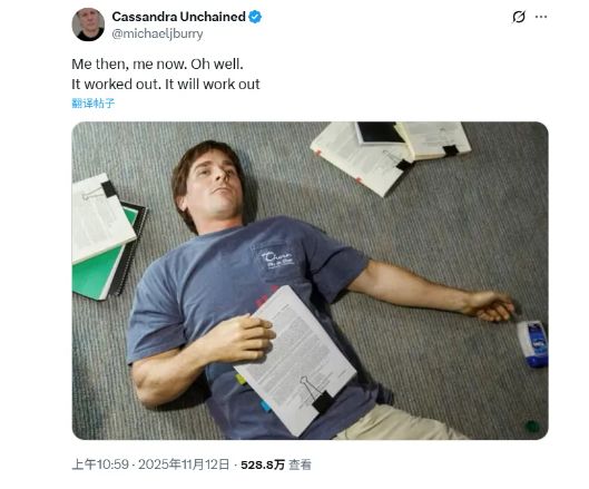 此外,他再度在社交媒體上發(fā)布了一張“大空頭”的劇照,隱喻“此時(shí)此刻正如彼時(shí)彼刻”,而這一切終將水落石出。