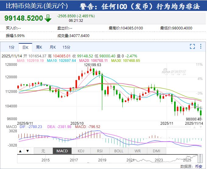 當(dāng)?shù)貢r(shí)間11月13日,美股三大指數(shù)集體收跌,道瓊斯指數(shù)下跌797.6點(diǎn),跌幅1.65%;標(biāo)普500指數(shù)下跌113.43點(diǎn),跌幅1.66%,納斯達(dá)克綜合指數(shù)下跌536.10點(diǎn),跌幅2.29%。 科技板塊跌幅居前,特斯拉跌超6%,英特爾跌超5%,AMD、甲骨文跌超4%,英偉達(dá)跌超3%,亞馬遜、谷歌跌超2%。 其中,英偉達(dá)市值一夜蒸發(fā)1686.42億美元(約合人民幣11966.67億元)。 貝萊德最新披露的13F文件顯示,在截至9月底的三季度中,其以市值計(jì)算的頭號(hào)增持標(biāo)的為微軟,共買入約1028萬(wàn)股。亞馬遜和英偉達(dá)分別獲950萬(wàn)股、1947萬(wàn)股增持。蘋果遭數(shù)量250萬(wàn)股的減持,谷歌A+C股合計(jì)被其賣出約478萬(wàn)股。貝萊德在三季度還增持了摩根大通和伯克希爾哈撒韋等金融股。 熱門中概股多數(shù)下跌,納斯達(dá)克中國(guó)金龍指數(shù)收跌1.59%。百度跌超6%,嗶哩嗶哩跌超4%,小鵬汽車、蔚來(lái)跌超3%。 富時(shí)A50期指連續(xù)夜盤收跌0.47%,報(bào)15466點(diǎn)。 現(xiàn)貨黃金跌1.05%,報(bào)4151.25美元/盎司;現(xiàn)貨白銀跌1.78%,報(bào)52.28美元/盎司。 WTI 12月原油期貨收漲0.20美元,漲幅0.34%,報(bào)58.69美元/桶。布倫特1月原油期貨收漲0.30美元,漲幅0.48%,報(bào)63.01美元/桶。 行情顯示,比特幣跌至99148.52美元,跌幅達(dá)2.46%。coinglass數(shù)據(jù)顯示,24小時(shí)加密幣全網(wǎng)共有194229人被爆倉(cāng),爆倉(cāng)總金額為7.17億美元(約合人民幣50.88億元)。 據(jù)媒體報(bào)道,當(dāng)?shù)貢r(shí)間11月13日消息,數(shù)天前引發(fā)美股暴跌的知名“大空頭”邁克爾·貝瑞(Michael Burry),宣布他管理的Scion基金已經(jīng)從美國(guó)證券交易委員會(huì)撤銷注冊(cè)。 同時(shí),貝瑞還在社交平臺(tái)上表示,所謂“9.12億美元做空”不過(guò)是媒體的數(shù)學(xué)錯(cuò)誤——他真實(shí)投入的資金只有920萬(wàn)美元。 與此同時(shí),SEC文件顯示其旗下Scion Asset Management已于11月10日終止注冊(cè)。 11月初,貝瑞管理的Scion基金公布13F監(jiān)管文件,顯示其分別持有兩大明星AI公司Palantir、英偉達(dá)的看跌期權(quán)。他還在社交媒體上屢次發(fā)言,認(rèn)為市場(chǎng)正處于泡沫狀態(tài),并指責(zé)科技巨頭偷偷拉長(zhǎng)算力芯片的折舊時(shí)間,從而降低大規(guī)模投資對(duì)利潤(rùn)表的影響。 彼時(shí),有媒體報(bào)道他“十億美元做空”Palantir、英偉達(dá),這引發(fā)了美國(guó)科技股的全面下挫。 貝瑞親自辟謠并披露了持倉(cāng)細(xì)節(jié)。他提供的截圖顯示,他持有5萬(wàn)張Palantir 2027年1月15日到期、行權(quán)價(jià)50美元的看跌期權(quán),相當(dāng)于500萬(wàn)股。他同時(shí)解釋稱,他購(gòu)買的價(jià)格是1.84美元,所以購(gòu)買這些期權(quán)總共花了920萬(wàn)美元。這一交易已經(jīng)在10月交割完成。 另外,他還持有1萬(wàn)張英偉達(dá)2027年12月17日到期、行權(quán)價(jià)110美元的看跌期權(quán),但未透露價(jià)格。 貝瑞還在社交媒體平臺(tái)預(yù)告,11月25日將有大消息公布。 此外,他再度在社交媒體上發(fā)布了一張“大空頭”的劇照,隱喻“此時(shí)此刻正如彼時(shí)彼刻”,而這一切終將水落石出。 當(dāng)?shù)貢r(shí)間11月12日,美國(guó)總統(tǒng)特朗普在白宮簽署了國(guó)會(huì)兩院通過(guò)的一項(xiàng)聯(lián)邦政府臨時(shí)撥款法案,從而結(jié)束了已持續(xù)43天的史上最長(zhǎng)聯(lián)邦政府“停擺”。 據(jù)央視新聞,簽字儀式上,特朗普表示,美國(guó)政府“停擺”損失了1.5萬(wàn)億美元,真正計(jì)算出損失的總體影響需要數(shù)周甚至數(shù)月的時(shí)間。 美國(guó)白宮新聞秘書卡羅琳·萊維特12日警告,受聯(lián)邦政府“停擺”影響,10月美國(guó)消費(fèi)者價(jià)格指數(shù)(CPI)和就業(yè)數(shù)據(jù)統(tǒng)計(jì)報(bào)告“可能永遠(yuǎn)不會(huì)”發(fā)布。 當(dāng)?shù)貢r(shí)間11月13日,美國(guó)政府恢復(fù)運(yùn)行首日,原定于當(dāng)日發(fā)布的美國(guó)10月CPI數(shù)據(jù)未能如期發(fā)布。 白宮經(jīng)濟(jì)顧問(wèn)哈塞特13日表示,將獲得一半的就業(yè)報(bào)告,推遲發(fā)布的美國(guó)10月就業(yè)報(bào)告將不會(huì)有失業(yè)率數(shù)字。下周或?qū)⒛玫?月就業(yè)報(bào)告。 美國(guó)勞工統(tǒng)計(jì)局表示,可能需要一些時(shí)間全面評(píng)估情況并最終確定發(fā)布數(shù)據(jù)的日期。 在聯(lián)邦政府“停擺”期間,作為美國(guó)官方統(tǒng)計(jì)機(jī)構(gòu)的勞工統(tǒng)計(jì)局大體處于停工狀態(tài),其數(shù)據(jù)統(tǒng)計(jì)職能受到影響:9月的就業(yè)數(shù)據(jù)報(bào)告雖在“停擺”前已基本完成,但只能等到“停擺”結(jié)束后才能發(fā)布;同月的CPI數(shù)據(jù)報(bào)告在10月份延遲數(shù)天得以發(fā)布,但編制過(guò)程堪稱潦草。有消息稱,勞工統(tǒng)計(jì)局緊急召回了數(shù)名因“停擺”而被迫無(wú)薪休假的員工才得以完成。 據(jù)央視新聞報(bào)道,白宮國(guó)家經(jīng)濟(jì)委員會(huì)主任凱文·哈塞特當(dāng)?shù)貢r(shí)間11月13日表示,由于產(chǎn)出減少,美國(guó)政府“停擺”可能導(dǎo)致私營(yíng)部門損失6萬(wàn)個(gè)工作崗位。哈塞特表示,經(jīng)濟(jì)顧問(wèn)委員會(huì)的最新估