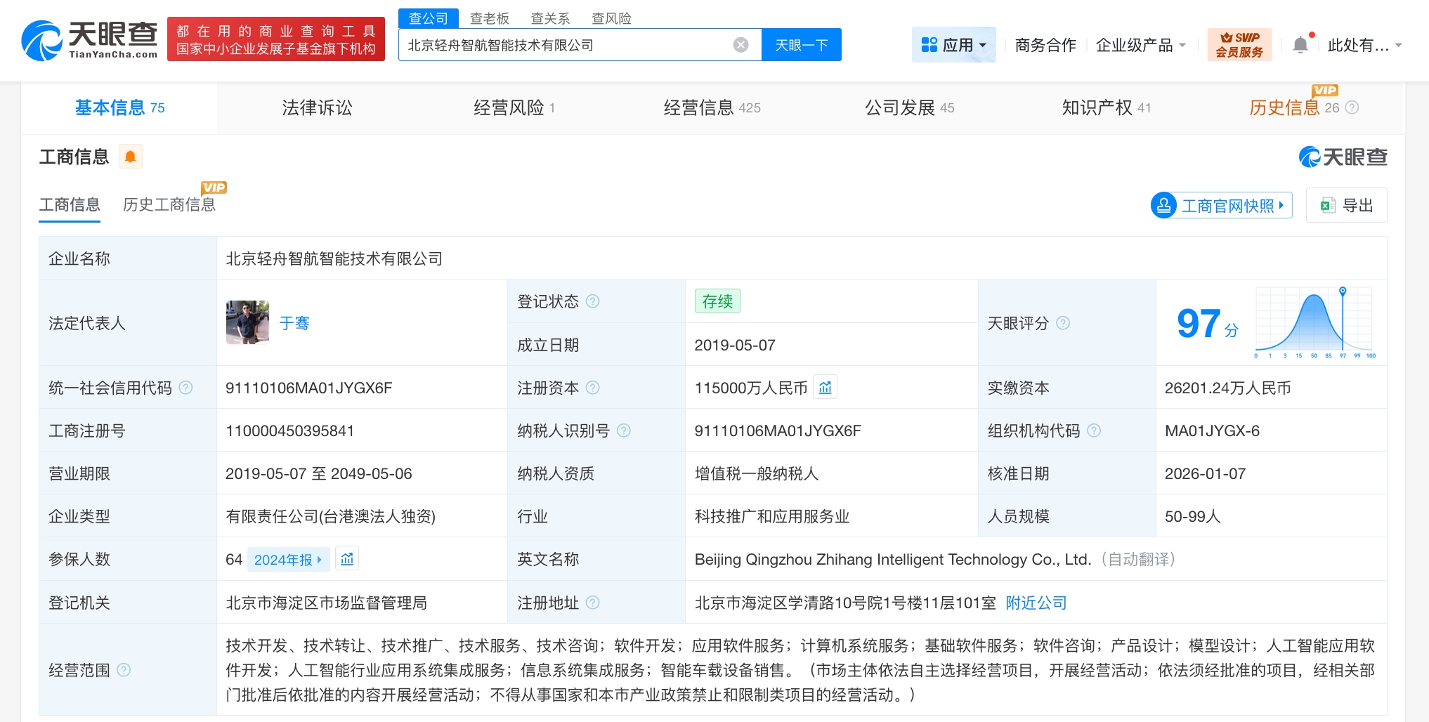 每經(jīng)AI快訊,天眼查工商信息顯示,近日,北京輕舟智航智能技術(shù)有限公司發(fā)生工商變更,注冊資本由8.5億元人民幣增至11.5億元人民幣,增幅約35%。該公司成立于2019年5月,法定代表人為于騫,經(jīng)營范圍含應(yīng)用軟件服務(wù)、計(jì)算機(jī)系統(tǒng)服務(wù)、基礎(chǔ)軟件服務(wù)、軟件咨詢、人工智能應(yīng)用軟件開發(fā)、人工智能行業(yè)應(yīng)用系統(tǒng)集成服務(wù)、信息系統(tǒng)集成服務(wù)、智能車載設(shè)備銷售等。股東信息顯示,該公司由輕舟(香港)科技有限公司全資持股。
