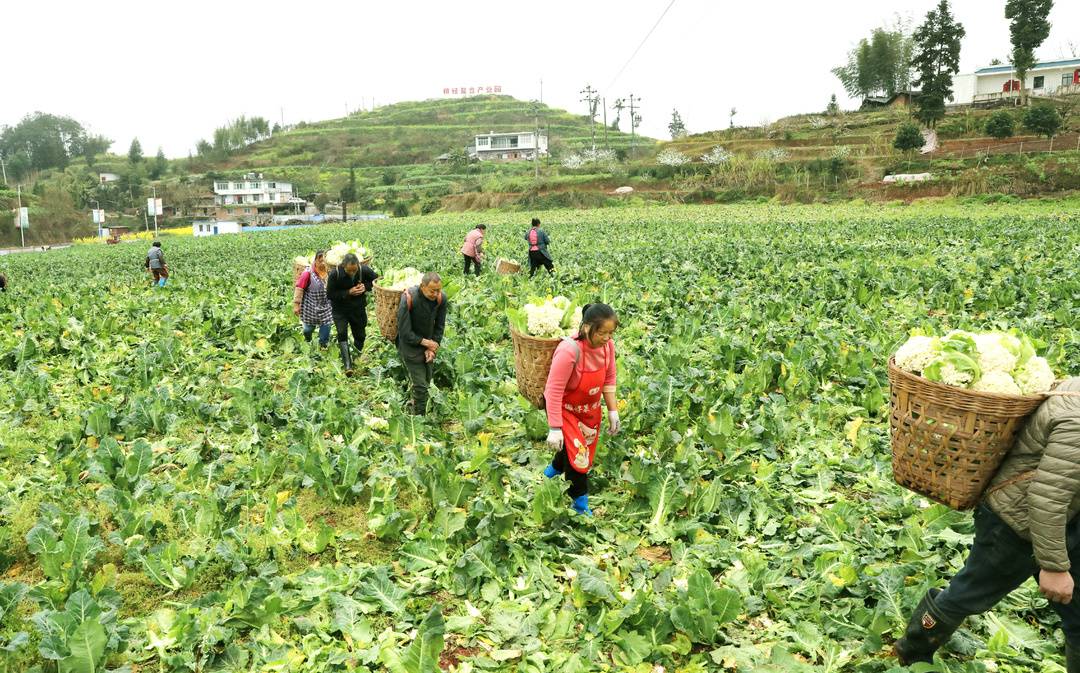工人在高縣田間采收花菜。(陳小芳 攝)