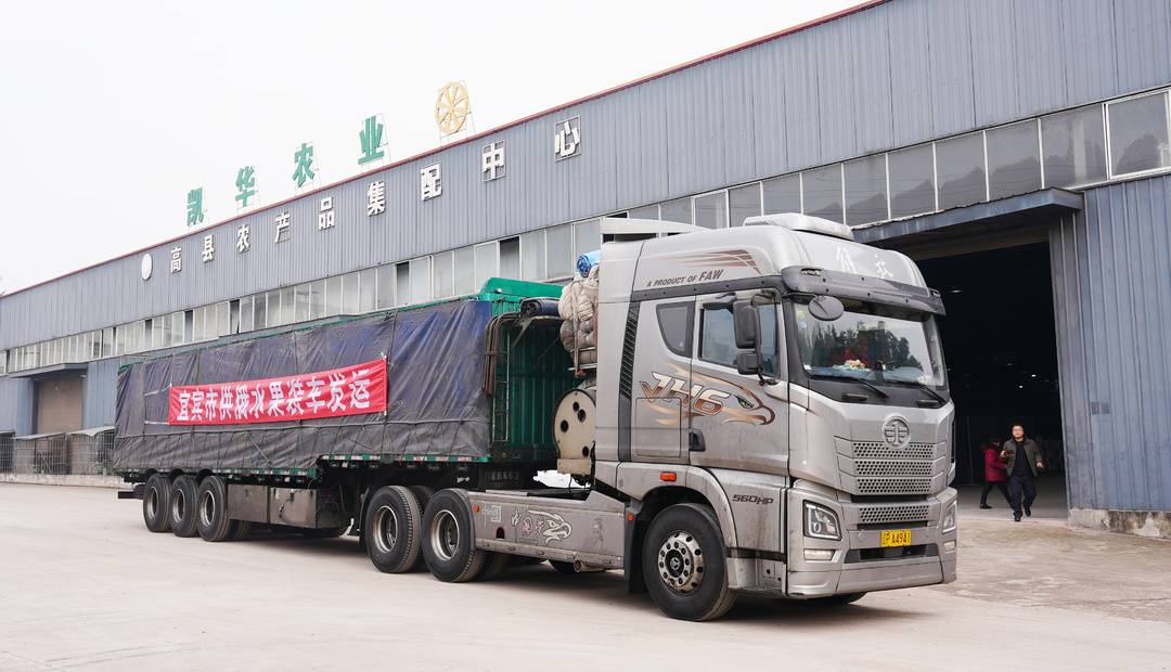 高縣的檸檬裝車后將發(fā)往海外。(陳小芳 攝)