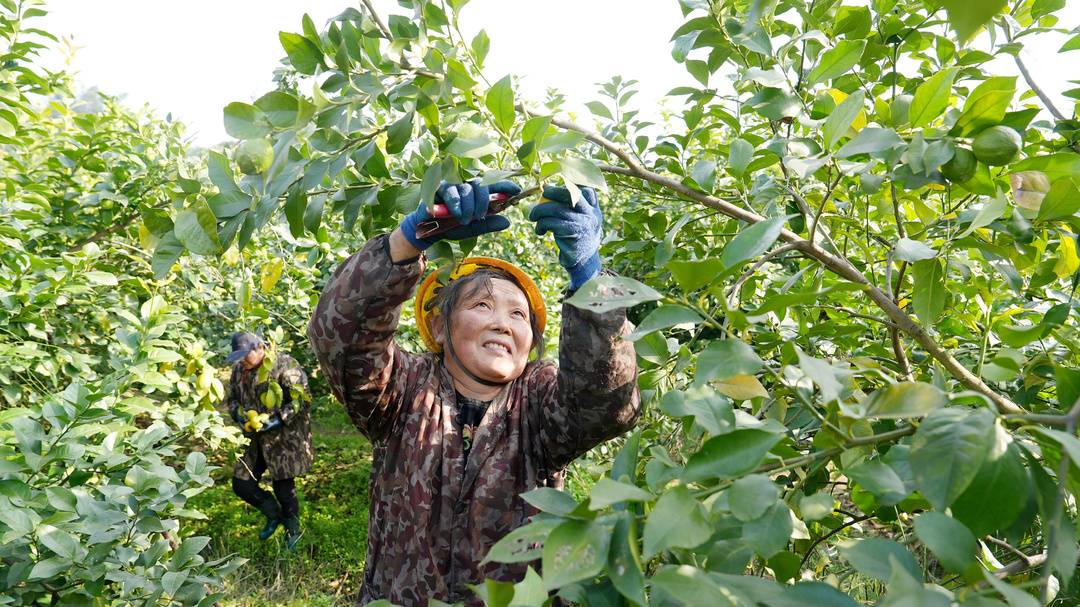 工人正在高縣沙河鎮(zhèn)白廟村采摘檸檬。(陳小芳 攝)