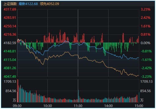 全市場超4800只個股下跌。滬深兩市成交額3.13萬億元,較上一個交易日放量1088億元。