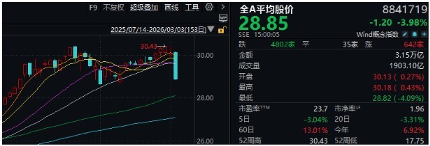 全A平均股價收跌3.98%,“一陰穿多線”。并且,本周市場已連續(xù)兩天超4000家下跌,“冰點(diǎn)”跡象明顯。