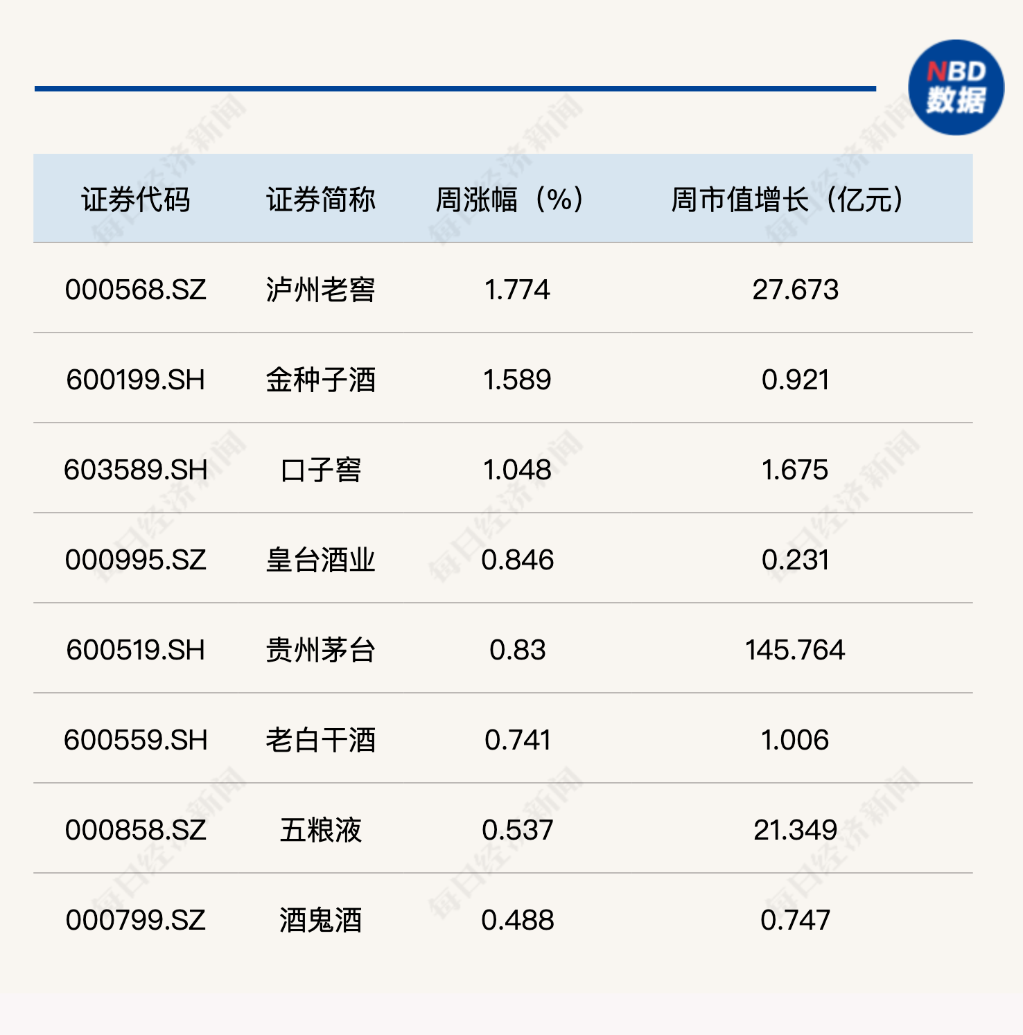 從白酒板塊個(gè)股表現(xiàn)來(lái)看,瀘州老窖、金種子酒、口子窖本周漲幅均超過(guò)1%;貴州茅臺(tái)、皇臺(tái)酒業(yè)、老白干酒、五糧液等多只白酒股也企穩(wěn)反彈。