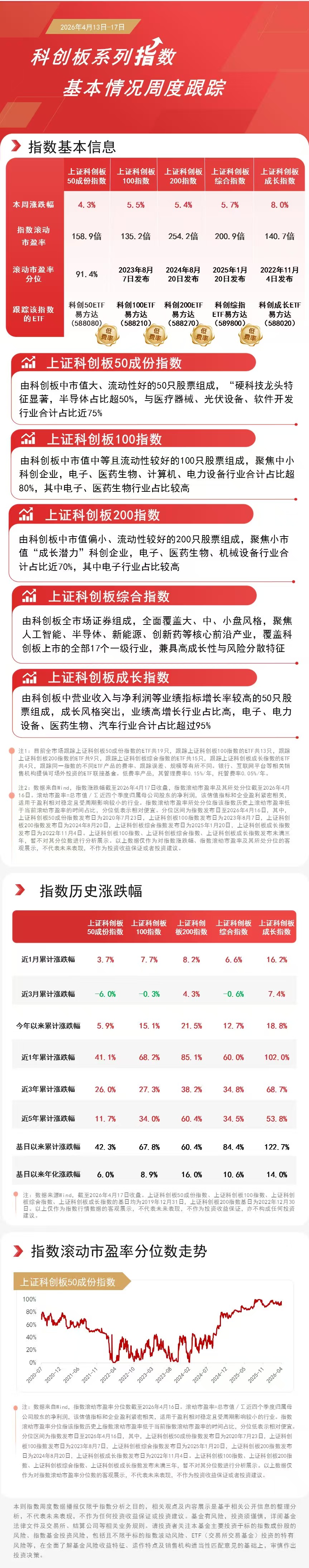 從本周維度來(lái)看,科創(chuàng)成長(zhǎng)指數(shù)上漲8.0%,科創(chuàng)綜指上漲5.7%,科創(chuàng)100指數(shù)上漲5.5%,科創(chuàng)200指數(shù)上漲5.4%,科創(chuàng)50指數(shù)上漲4.3%。