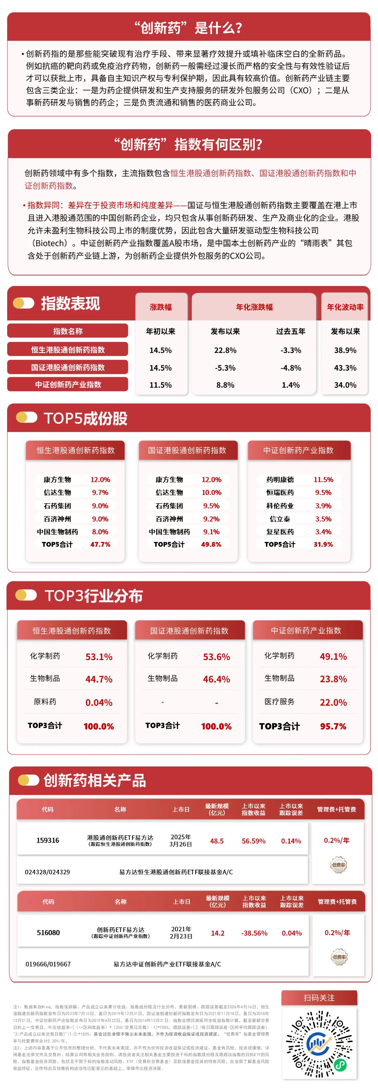 4月17日,市場(chǎng)走勢(shì)分化,創(chuàng)新藥板塊震蕩承壓,午后有所回暖,截至收盤(pán),恒生港股通創(chuàng)新藥指數(shù)下跌1.0%,中證創(chuàng)新藥產(chǎn)業(yè)指數(shù)下跌2.3%。Wind數(shù)據(jù)顯示,截至昨日,港股通創(chuàng)新藥ETF易方達(dá)(159316,聯(lián)接基金A/C:024328/024329)近6個(gè)交易日有5個(gè)交易日獲資金凈流入,合計(jì)超3億元;創(chuàng)新藥ETF易方達(dá)(516080,聯(lián)接基金A/C:019666/019667)則連續(xù)8個(gè)交易日獲資金凈流入,合計(jì)9300萬(wàn)元。
